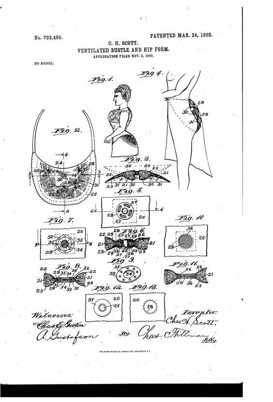 - US Patent for Ventilated bustle and hip-form US723495A by Charles H Scott (1903).