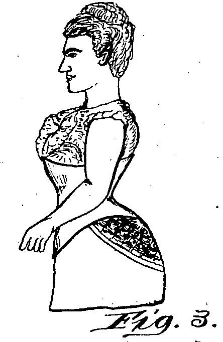 Illustration in the Scott patent, showing the bustle pad worn under the corset.
